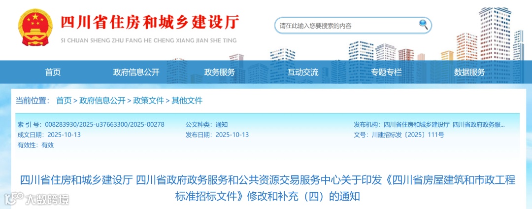 四川省住房和城乡建设厅 四川省政府政务服务和公共资源交易服务中心关于印发《四川省房屋建筑和市政工程标准招标文件》修改和补充(四)的通知