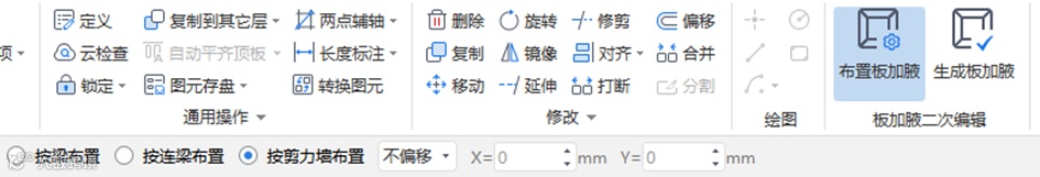 ②建模方式:板加腋构件新增直线绘制建模方式,灵活处理各类业务场景。使用直线绘制前,可以先调整构件的起点顶标高、终点顶标高。绘制过程中,可以使用F4命令将图元镜像处理,绘制到需要的位置。