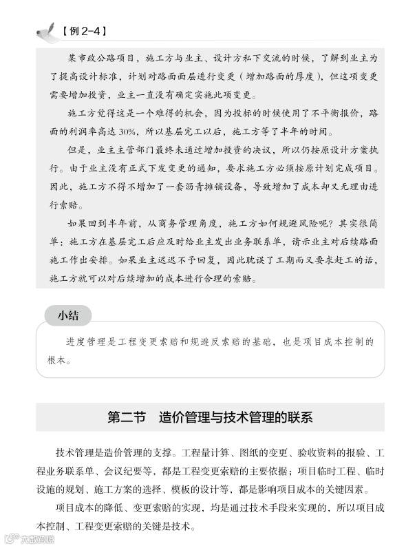 ”变更索赔意向表”的案例讲述工程变更索赔管理,首先,提出了工程变更索赔通常存在的5个误区,进而详细论述了工程变更的原因、范围、估价原则和程序,工程索赔的概念、分类、依据和内容,工程总承包合同模式下应由发包人承担费用的通用条款,总结了合同价款能否调整的10个问题;接着,提出了建筑企业最为关注的竣工结算问题,分析了竣工结算拖延的原因,提出了建筑企业的15项对策,从而得出“想要加快竣工结算进展和提高竣工结算质量,就必须加强变更索赔管理和基础性管理工作”的结论,后面的章节分别从工程变更索赔的职责分工、内外部程序、合同谈判等方面讲述了如何加强变更索赔的基础管理;其次,列举了4个管理实例:合同交底是变更索赔的基础,策划是变更索赔工作的纲领,信息化是实现变更索赔良好效果的管理手段,竣工结算是变更索赔工作最终的成果体现;通过8个实践案例、EPC项目商务管理要点的总结、“造价+法律”的融合,为变更索赔、竣工结算的实际操作提供了借鉴;最后,总结了变更索赔“业务能力+关系沟通+良好履约”的三大法则,高度凝练了本部分的内容。