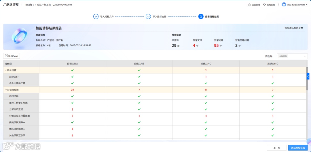政策节点,广联达清标通过数据、技术与AI等手段,将政策要求转化为可操作的分析工具,既落实了 “市场化定价” 的改革方向,又通过风险前置管控实现 “风险可控”,为新清单政策下的清标工作提供高效支撑。
