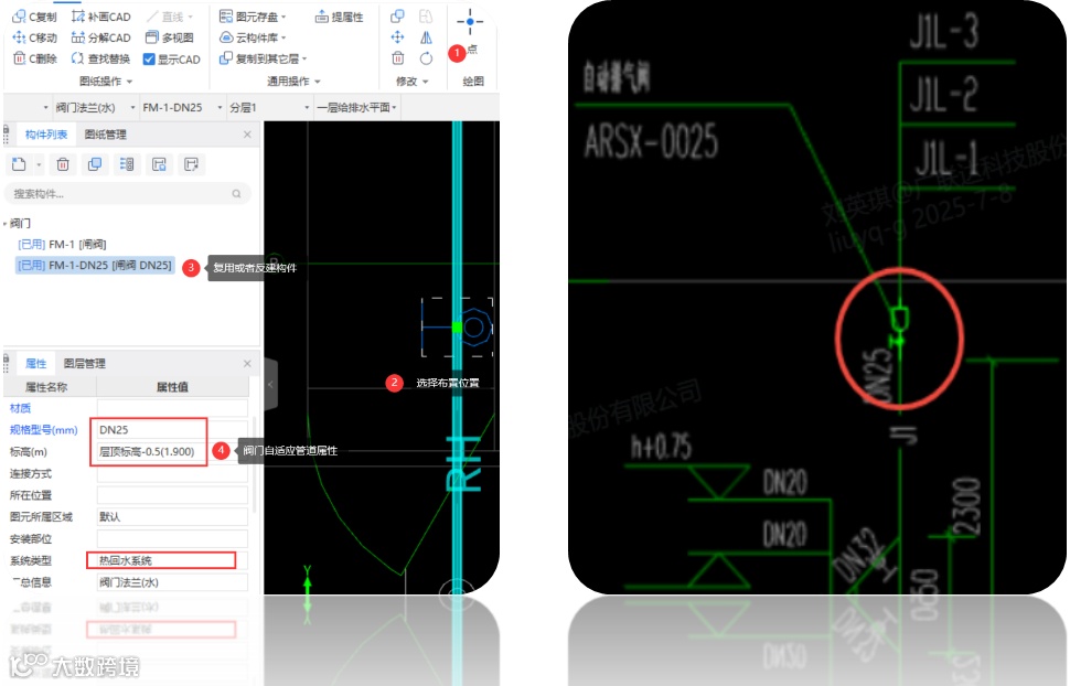 阀门&附件点布与识别均支持自适应管道属性