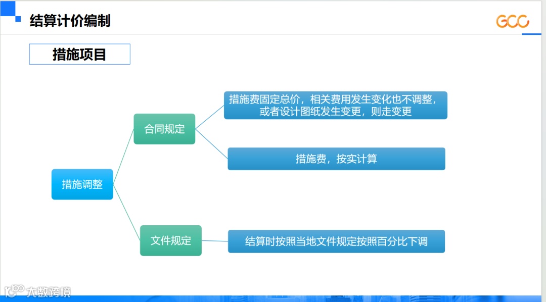 措施项目也需要对结算工程量进行对应调整,措施项目的量调整分为两种情况,定义合同约定,措施费执行固定总价,即发生变化不调整,或者据实结算,第二种情况,按照当地文件规定依据百分比下调,而这两种情况,软件都可实现。