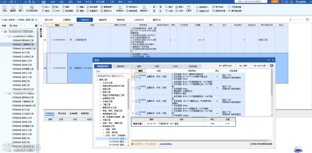 运用指标网的“典型清单指引”功能,快速找到“参考答案”: 预算员能迅速查找类似安装专业的标准清单项及其组价逻辑。