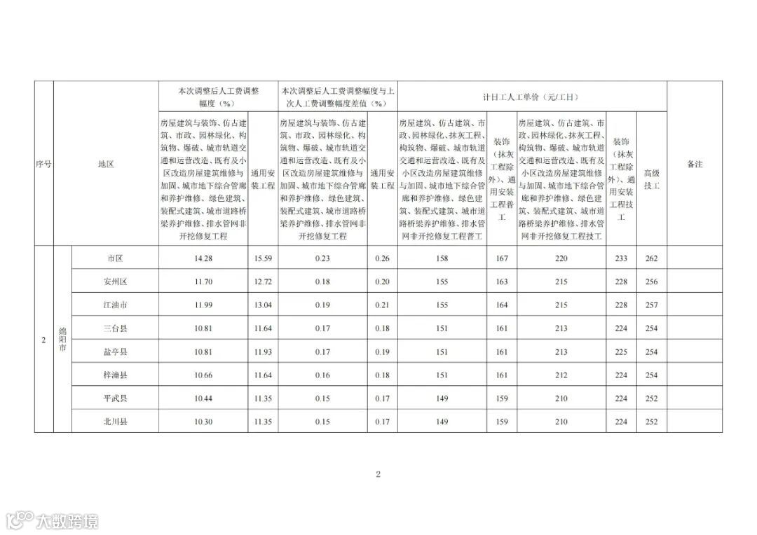 附件:2025年下半年各市(州)2020年《四川省建设工程工程量清单计价定额》人工费调整幅度及计日工人工单价