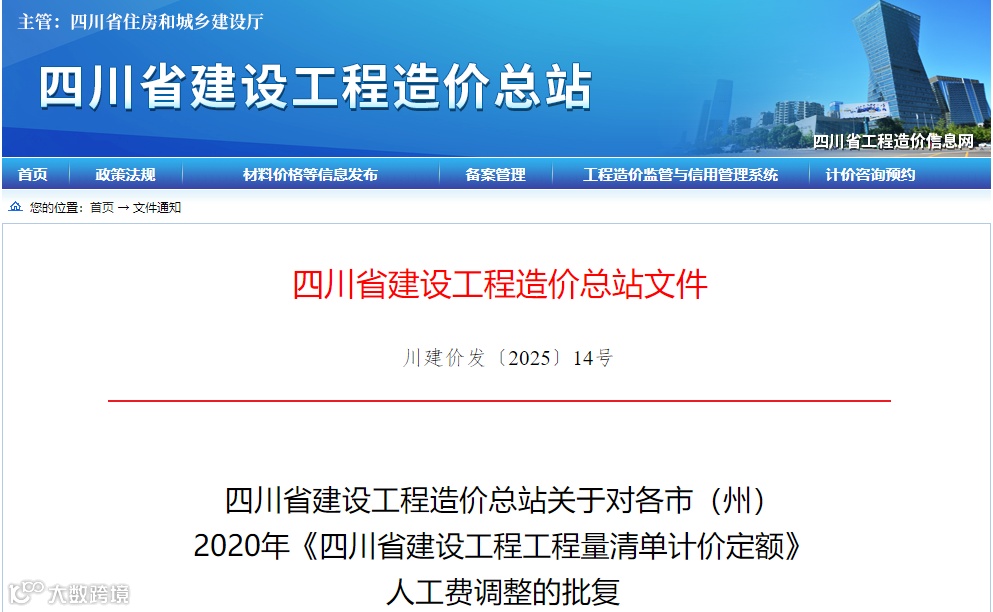 按照《四川省住房和城乡建设厅关于发布〈四川省建设工程工程量清单计价定额〉的通知》(川建造价发〔2020〕315号)和《四川省住房和城乡建设厅关于改进和完善建设工程定额计日工单价和人工费调整工作的通知》(川建造价发〔2020〕316号)的精神,根据《四川省建设工程造价总站关于印发2020年〈四川省建设工程工程量清单计价定额〉人工费调整系数公式和人工费调整幅度及计日工人工单价表格的通知》(川建价发〔2021〕1号)的要求,现批准2025年下半年各市(州)2020年《四川省建设工程工程量清单计价定额》人工费调整幅度及计日工人工单价(见附件)。