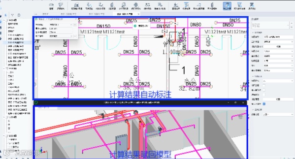 综合剖面图出图:支持多专业管道一并引出标注,可灵活设置标注内容和引出方向,满足复杂模型、多层管道剖面场景下快速标注出图的需求。