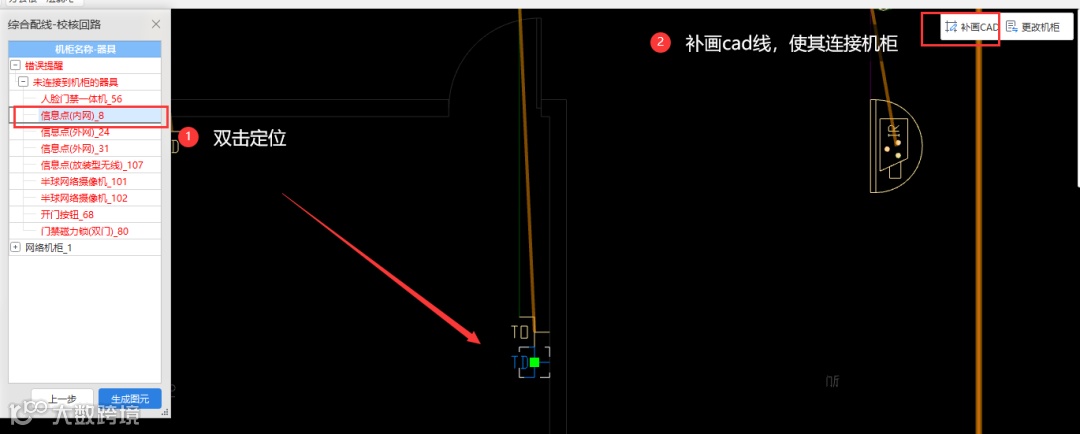 /新增/ “综合配线”功能,可一键识别多个系统的前端设备到机柜连线;自动区分桥架内外不同走线方式。