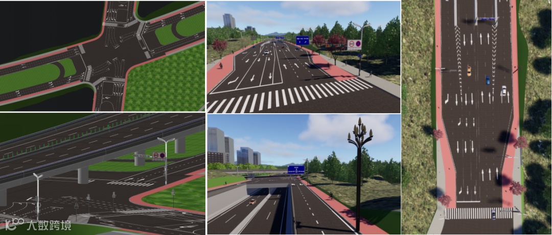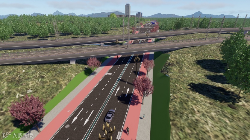 通过广联达数维道路软件对道路进行建模,生成标线、绿化等模型,深度还原建成后的道路效果。