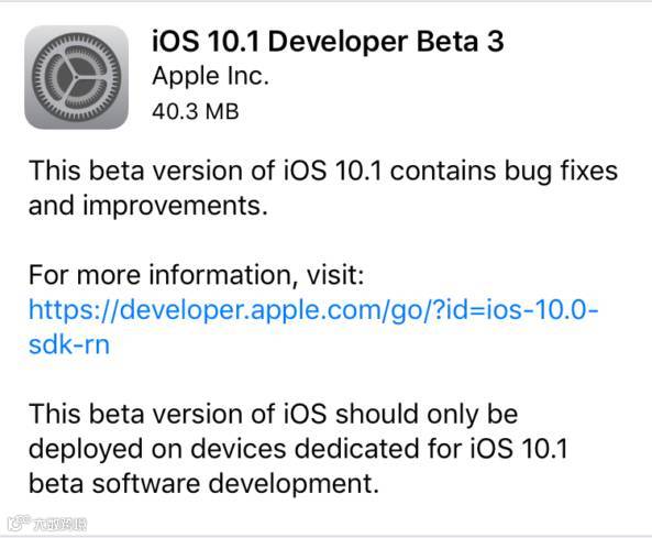 威锋网讯,苹果今天凌晨推送了 iOS 10.1 的第三个测试版,注册开发者可以通过 OTA 的形式进行升级,也可以通过苹果的开发者网页进行下载。