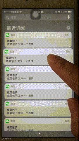 另外还有大多数朋友都知道的“全部清除”按钮,这个也是 3D Touch。按压一下通知列表右上角的小 x 图标,就能弹出这个选项。
