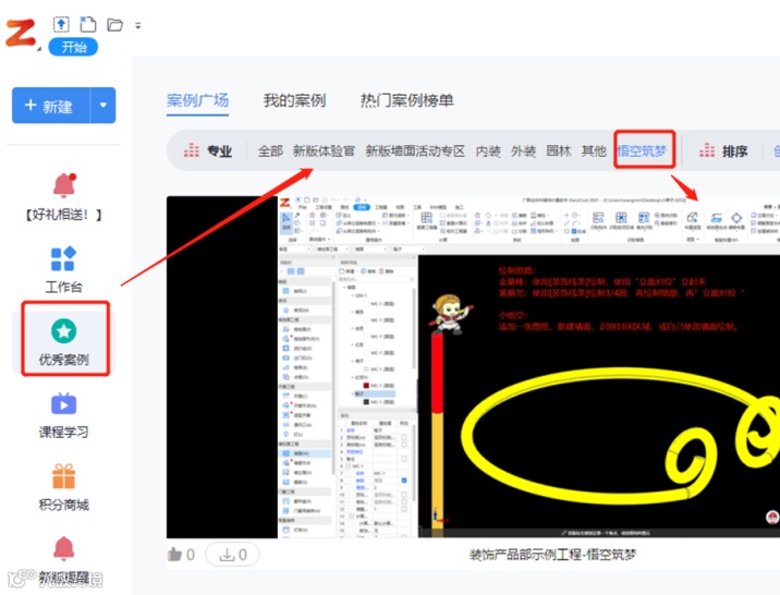 点击左侧“优秀案例”的示例“悟空筑梦-案例工程”