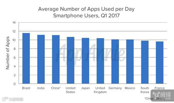 有趣的是,数据显示 iPhone 用户每天使用的应用程序比 Android 设备用户要多一些。App Annie 认为,这可以归因于 iOS 系统提供的应用程序更优质。还有数据显示,平均而言,用户使用的应用程序仅占安装在智能手机上的应用程序总数的三分之一到一半。