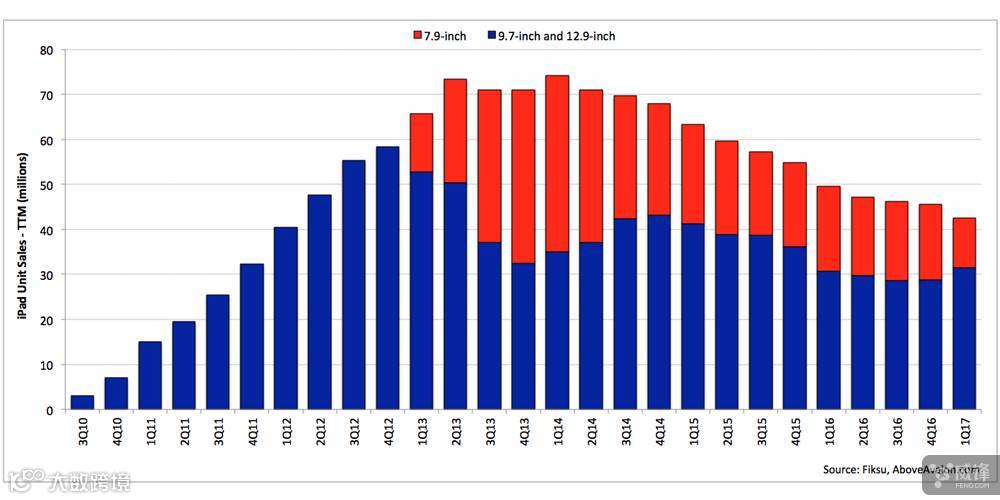 分析机构 Fiksu 提供的数据显示,iPad mini 产品线的销量的确出现了萎缩,而除此之外,9.7 英寸和 12.9 英寸 iPad 产品的销量在过去一年中基本上是持平的。