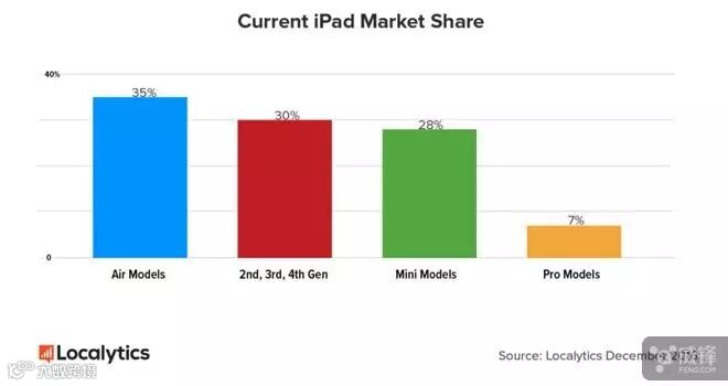 目前在所有 iPad 用户中,iPad 4 及以下旧款 iPad 用户比重为 30%。iPad Air 和 iPad Air 2 用户比重为 35%。对于 iPad 4 及以下旧款 iPad 用户来说,本周早些时候更新 iPad 非常值得更新,价格不贵,而且规格等方面的更新也非常实在。为什么这么说呢?下面我们就通过 3 个数据来了解吧。