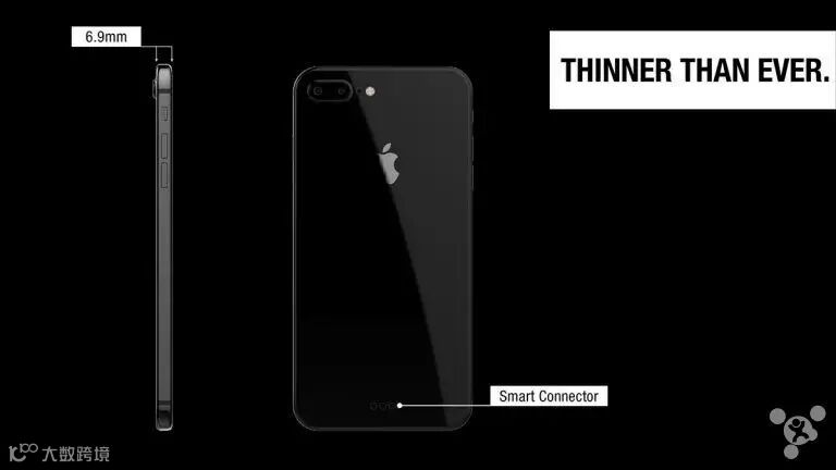 这款 iPhone X 配备 5.8 英寸曲面 OLED 屏幕,下边框也触摸屏一部分,用户可以在这里通过各种手势给 iPhone 发出指令。整个概念设计看起来与 iPhone 4 相似,可以说是大版本 iPhone 4。机身厚度为 6.9mm,机身背部有 Smart Connector,还有与 iPhone 7 Plus 相同的双摄像头。