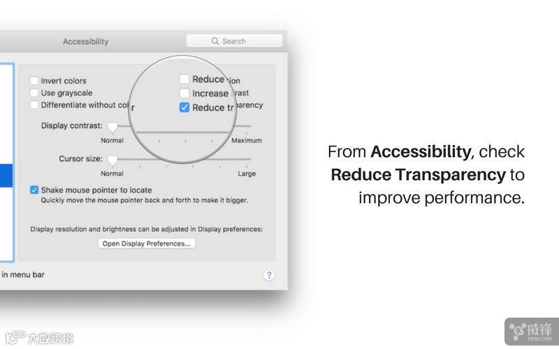 一些切换动画和透明度设置可能会对使用集成英特尔 GPU 的老式 Mac 造成速度上的缓慢。降低这些效果可以帮助提高 Mac 的性能。