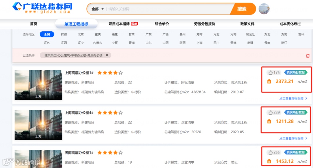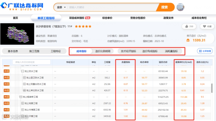 指标网提供全国范围16个一级业态下的18000+个单项工程指标数据,满足造价用户针对单项工程含量和项目单方造价指标数据的查询,通过查看参考指标网的量、价指标数据可以更加高效的完成控制价造价文件的自检和成果复核。