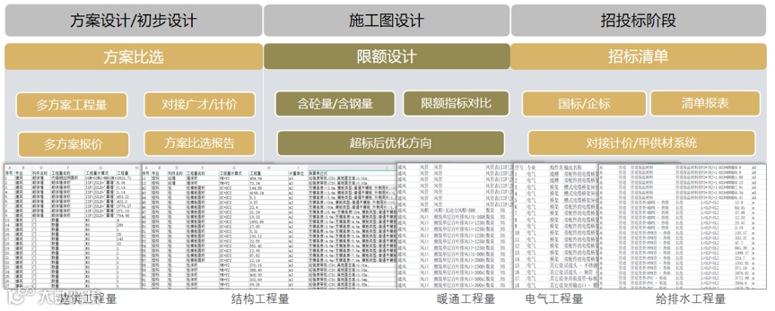 项目通过设计算量一体化在不同阶段的全方位应用提升酒店项目的设计沟通效率和精细化成本管控能力。BIM设计算量一体化技术将算量流程嵌套在设计条线,实时提取关键性指标,在设计阶段对模型进行数据补充,把设计模型过渡到算量模型,实现模型复用、数据传递,可快速生成工程量清单,避免造价重复建模。同时,基于施工图设计不同阶段实时出量,对限额指标进行提前超限风险管控,辅助甲方进行工程量管控,拓展设计交付价值。