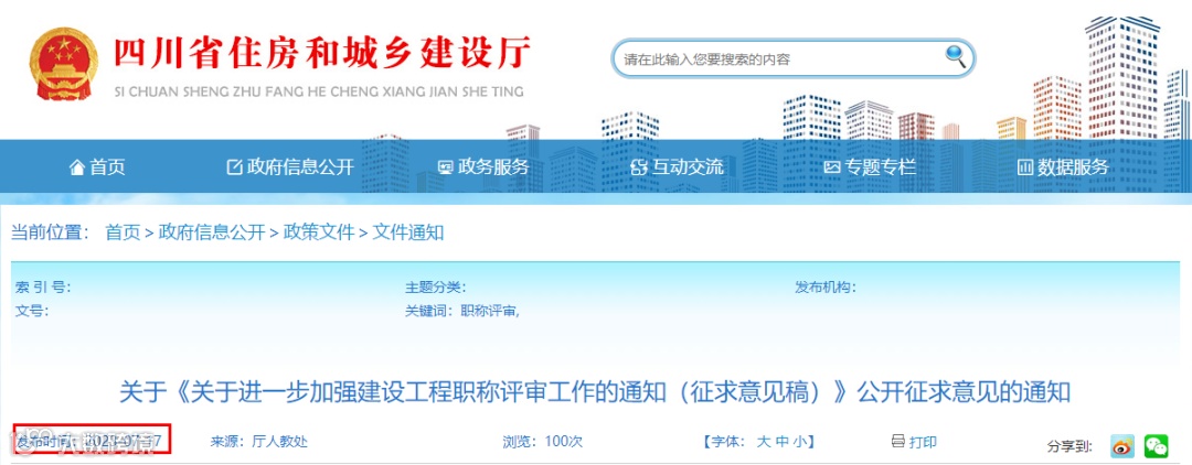 昨日,四川省住建厅发布关于《关于进一步加强建设工程职称评审工作的通知(征求意见稿)》公开征求意见的通知。