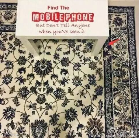 由于地毯图案纹理复杂,要不是眼力超群还真的很难从中找到 iPhone,讲真小编眼力不是太好,没有能够找到 iPhone 的位置。从网友的反馈情况来看,绝大多数网友也找不到 iPhone,即便找到了也花费了不少的“眼力”。