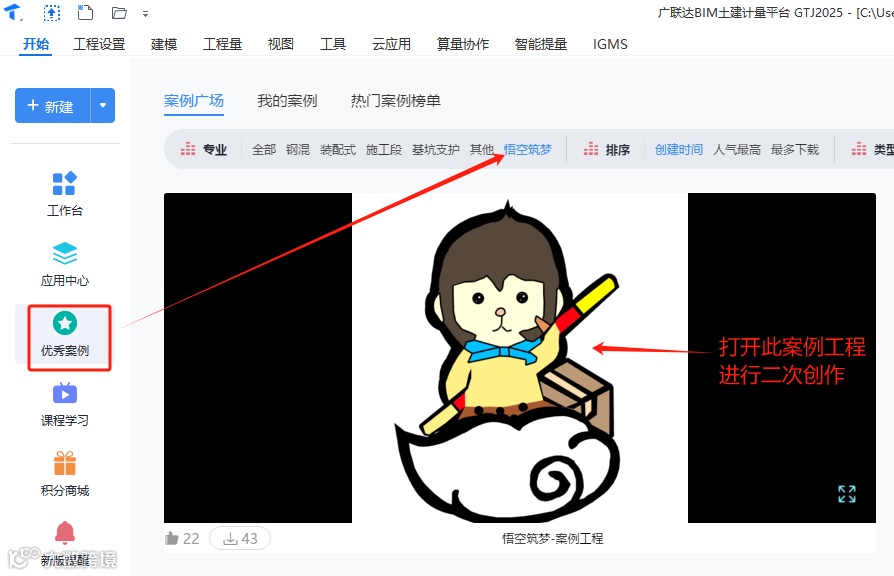 点击左侧“优秀案例”的示例“悟空筑梦-案例工程”