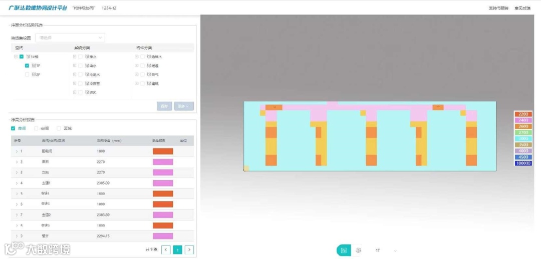 在完成模型的基础上,10分钟内即生成全楼栋的空间净高平面图,为空间使用保驾护航。