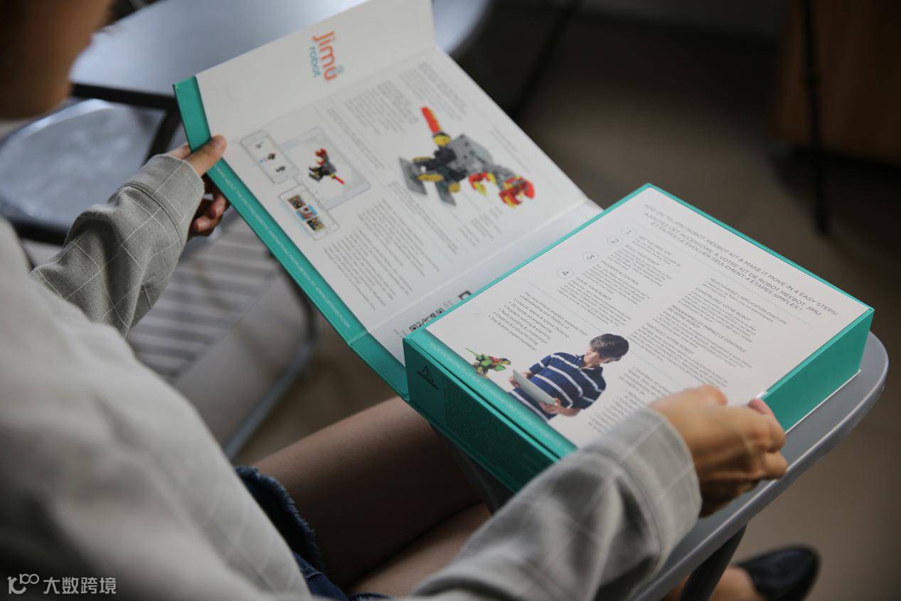 拆开包装,里面的打开的方式类似于书本,封面的背面有产品的介绍,第一页大概介绍了一些产品组装步骤翻过来是积木组件介绍。