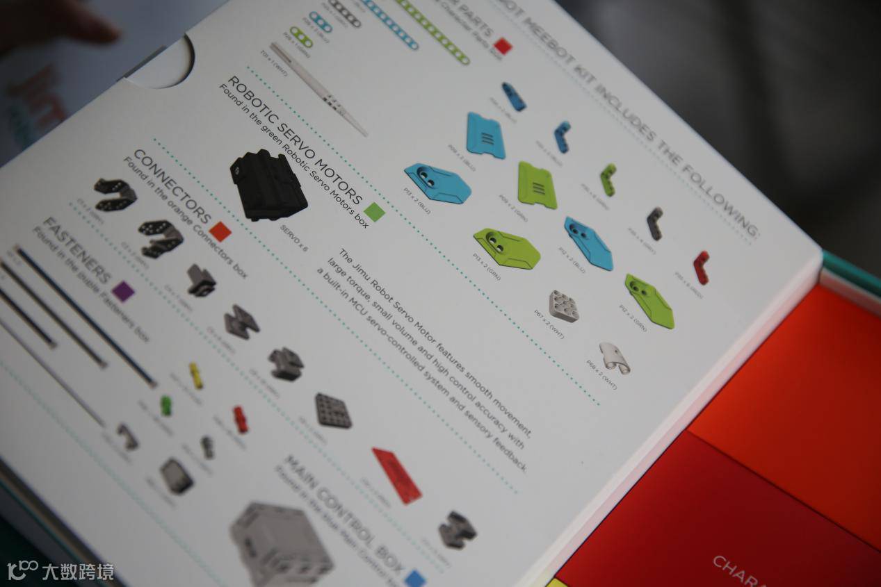 =12px Meebot kit 包含6个平稳运动机器人伺服电机,201装饰件、连接器、扣件、控制器、连接线、锂离子可充电电池,电源适配器APP快速入门指南。