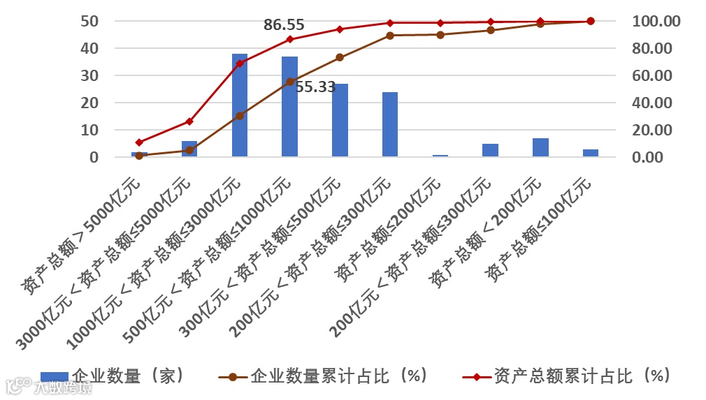 图7 不同资产总额水平的企业数量分布及其资产总额占比