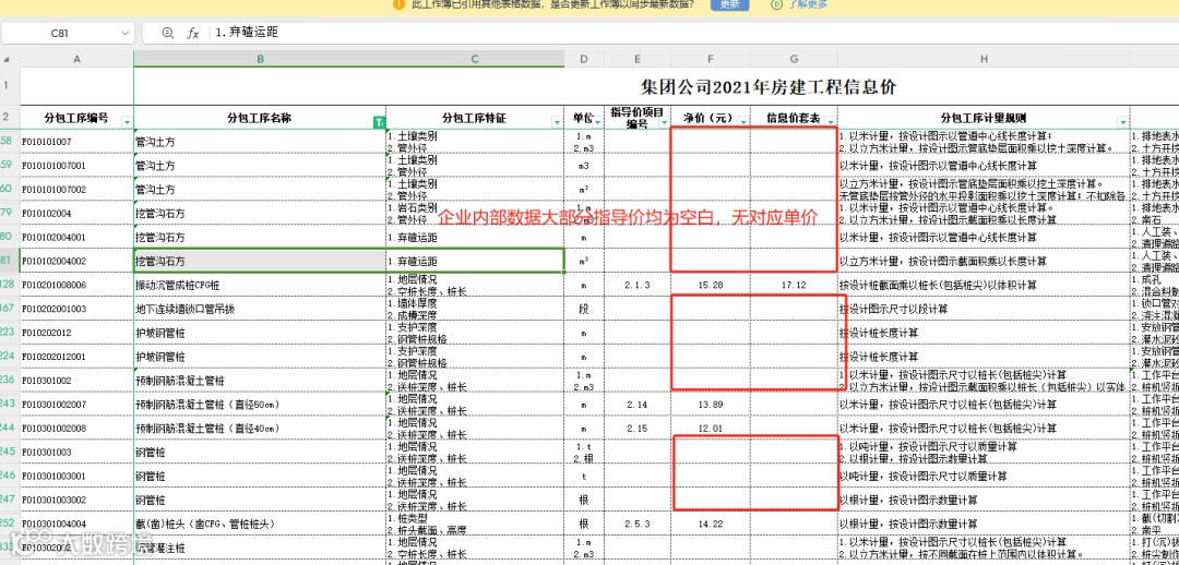 在进行合同签订的时候对于转岗人员有指导性参考限价/外部数据进行载价,防止指导价或合同签订数据偏离过大,进而导致结算整理费用时,因为各种各样的事情导致成本超支,有平台指标网和广材网的外部劳务、材料数据进行快速载价比价,弥补内部数据偏高或缺失部分。