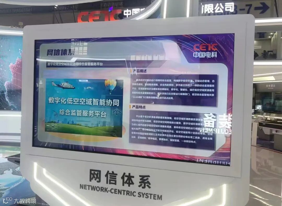 网信体系板块,呈现整体数字化解决方案输出能力,推出数字化低空空域智能协同综合监管服务平台、航空气象监测预报一体化平台、航空气象大数据平台、工业互联网、互联网+电子政务共5款展品。