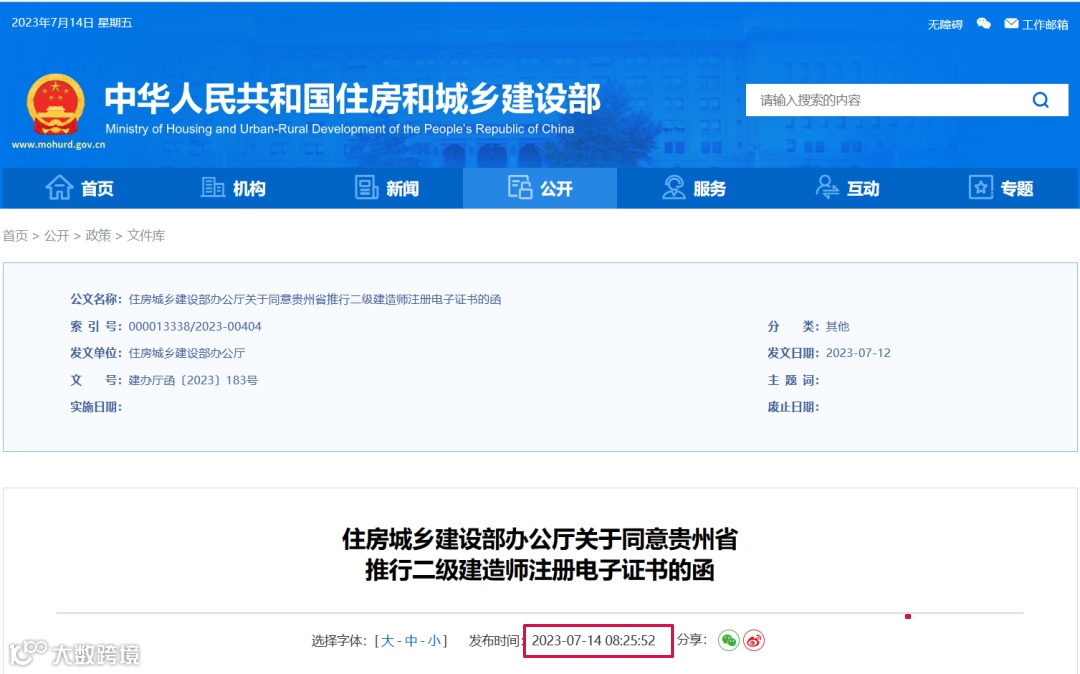 今年7月14日,住建部发布《关于同意贵州省推行二级建造师注册电子证书的函》,据悉此前已同意辽宁、湖南、天津、甘肃、吉林、青海、广西、福建、重庆、上海、四川、河南、浙江、江西、新疆、江苏、北京、陕西、云南等多地。