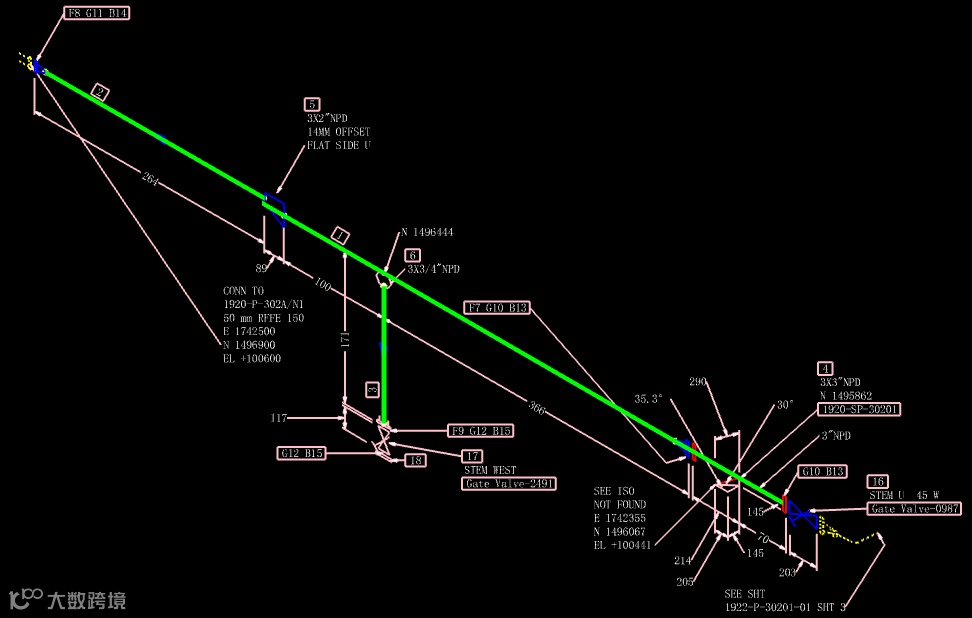 石油化工定额要求按"延长米"算量(含直管段及弯头、三通等管件当量长度,不扣附件长度),但材料表仅标注管线净长,需人工从密集交叉、视线遮挡的管线上逐段量取。因管线布局复杂,量取效率低且易偏差,导致精度不达标,引发结算审计争议
