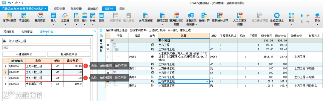 面对概算文件组价重复多效率低的问题,广联达水利云计价的建安单价库可以实现快速复用组价。