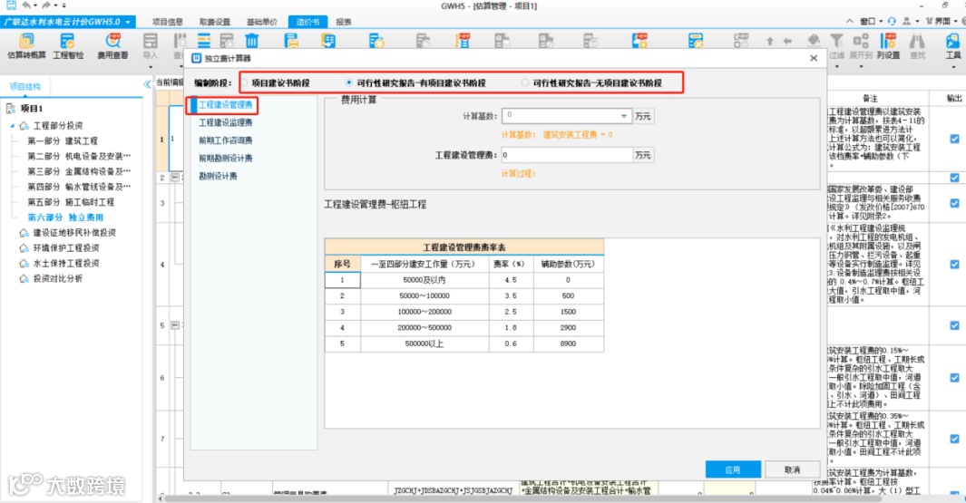 3、水利项目涉及全国各地,独立费计算各省文件及规定不一,且公式复杂,如何快速准确计算?