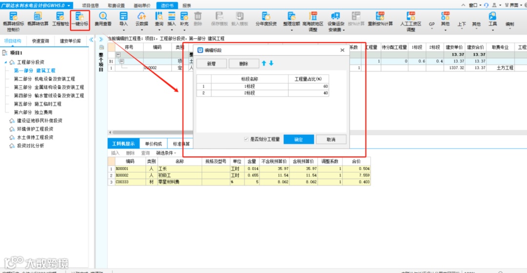 一键分标满足标段工程量快速拆分需求,避免重复工作。