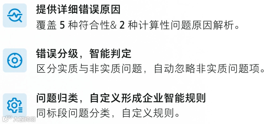 自定义检查规则,智能判定问题,减少争议提升分析效率。全面升级合规响应性分析判定能力: