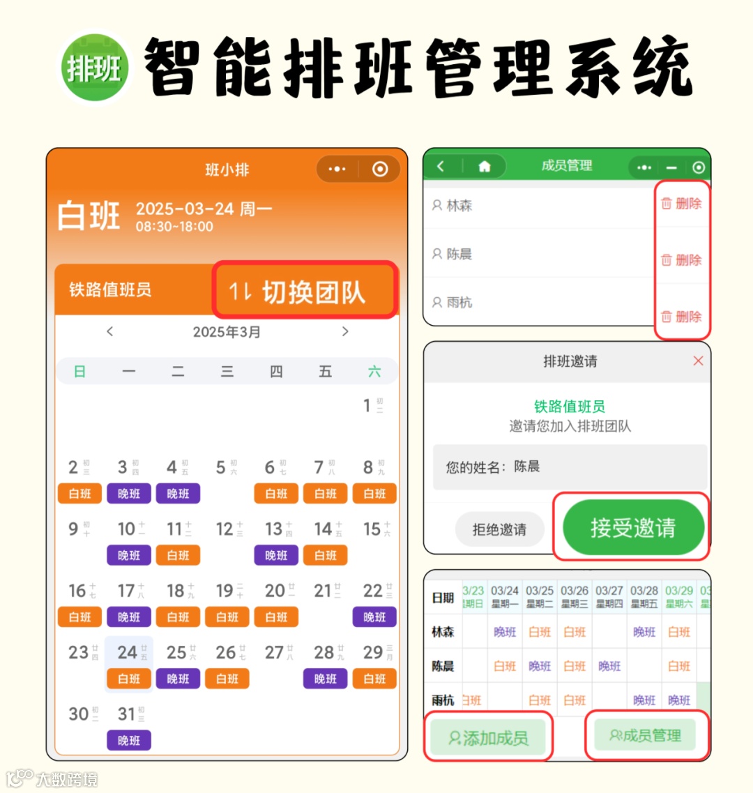 3、创建者有管理权限,可以删除成员,同时编辑所有人的排班。