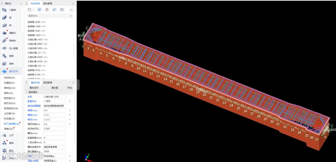 3、导墙-支持一键生成,可以查看钢筋三维,非常方便。