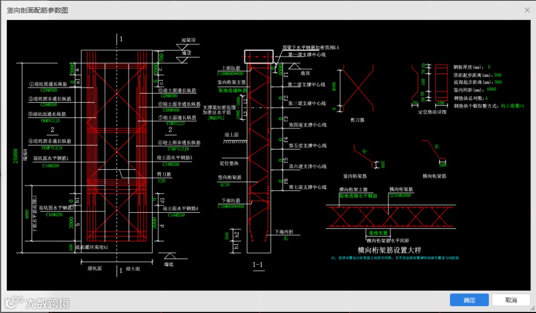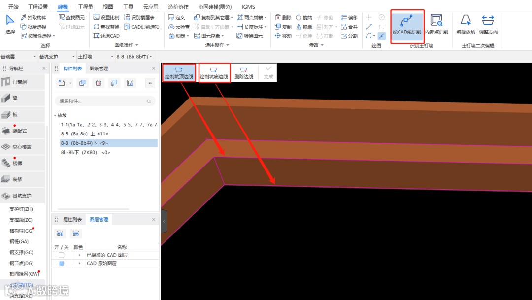 提供4种截面类型,参数支持从CAD底图读取,通过“识别地连墙”快速完成建模。