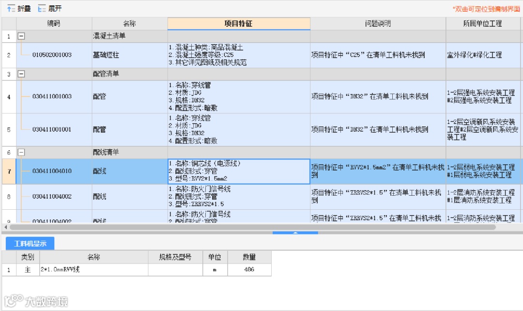 二、材料和项目特征不匹配检查