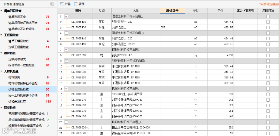 ②钢筋材料价格不合理?风阀材料价格与规格不符?我也能直接提醒~