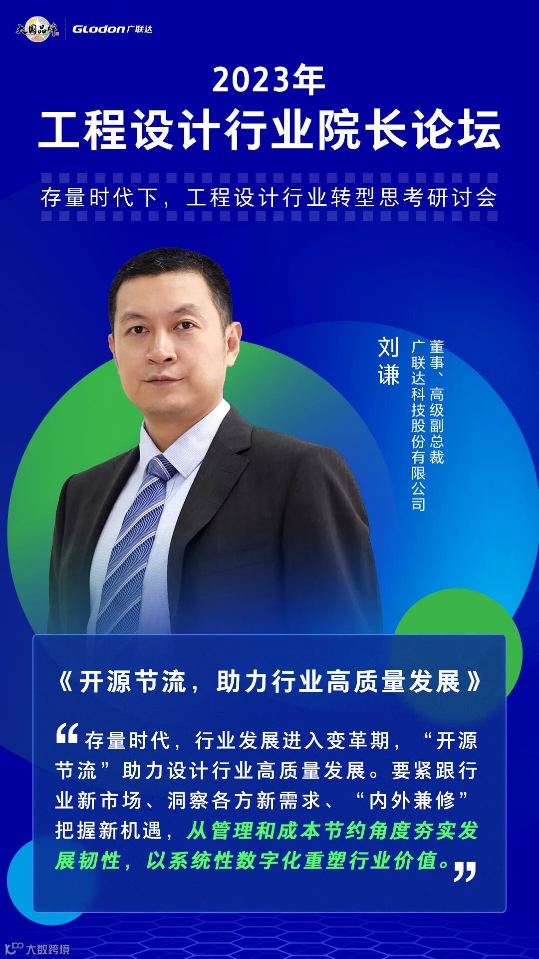 广联达董事、高级副总裁刘谦将参加“存量时代下设计行业转型思考研讨会”,分享《开源节流,助力行业高质量发展》的心得感悟。