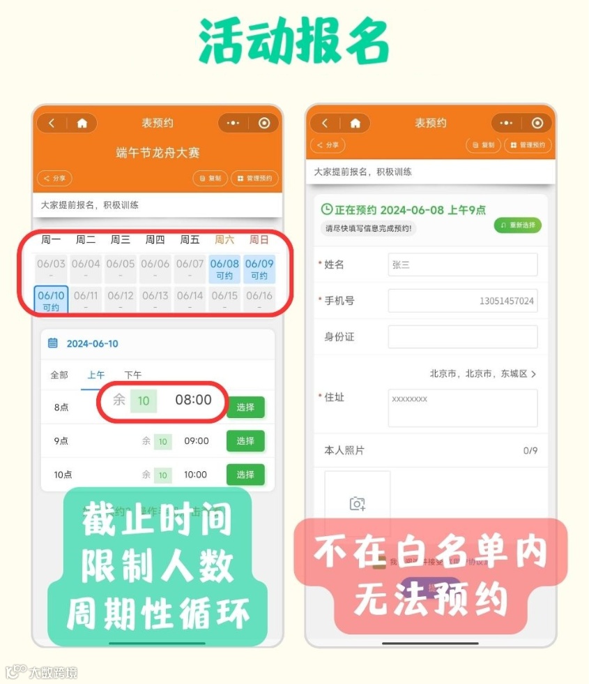 方便快捷:参与者只需通过微信扫码或搜索活动公众号,即可进入报名页面进行报名,无需繁琐的注册和登录流程,大大节省了时间和精力。 -