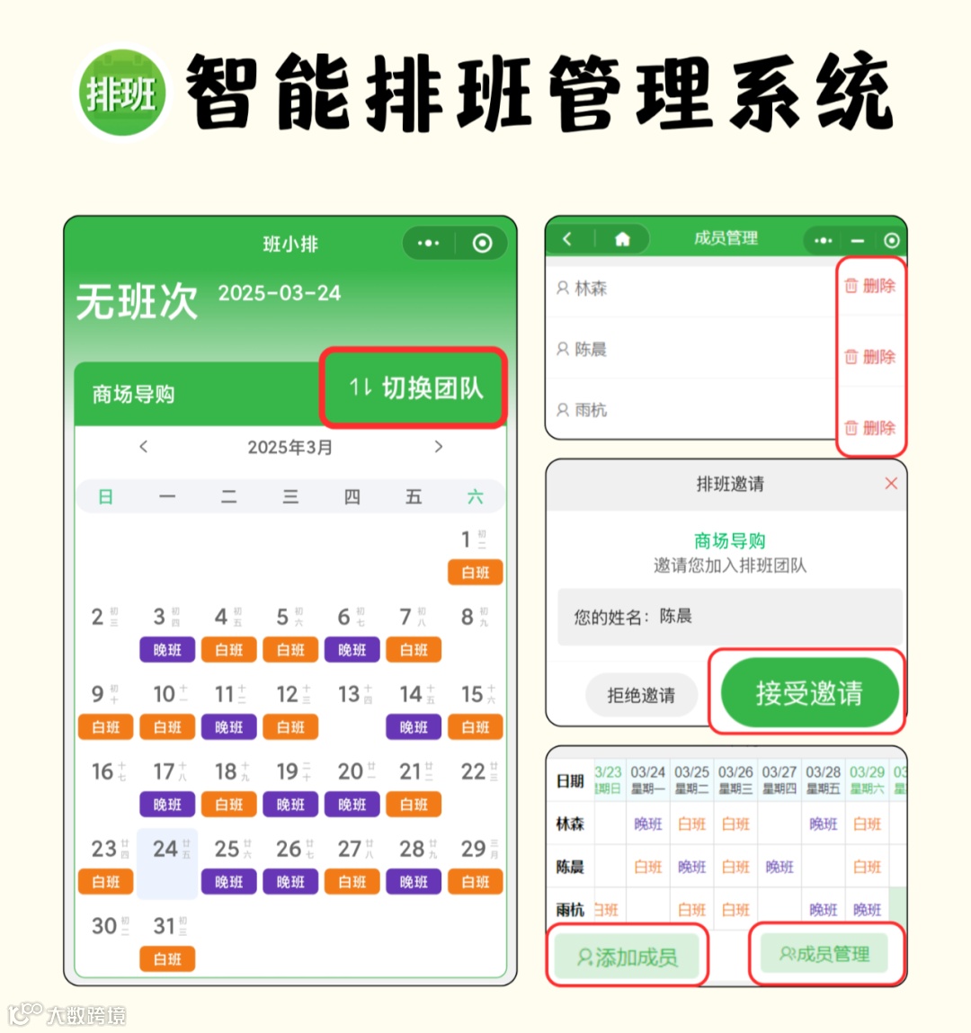 3、创建者有管理权限,可以删除成员,同时编辑所有人的排班。