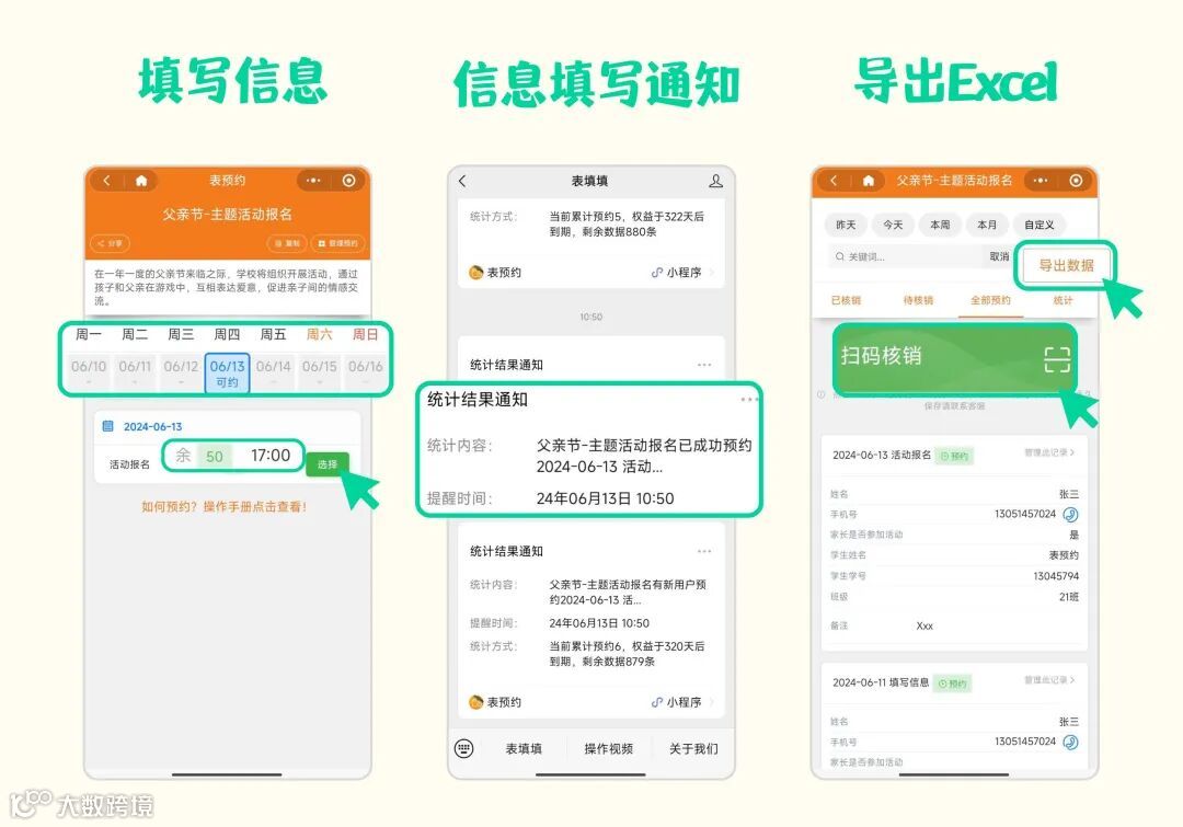父亲节,马上就要到了,学校的各位老师、单位的行政策划们,就要举办各种活动了,如亲子游戏、家庭拍摄打卡、户外亲子郊游、演讲比赛、角色互换等活动。可以使用表预约完成所有类型的活动报名。