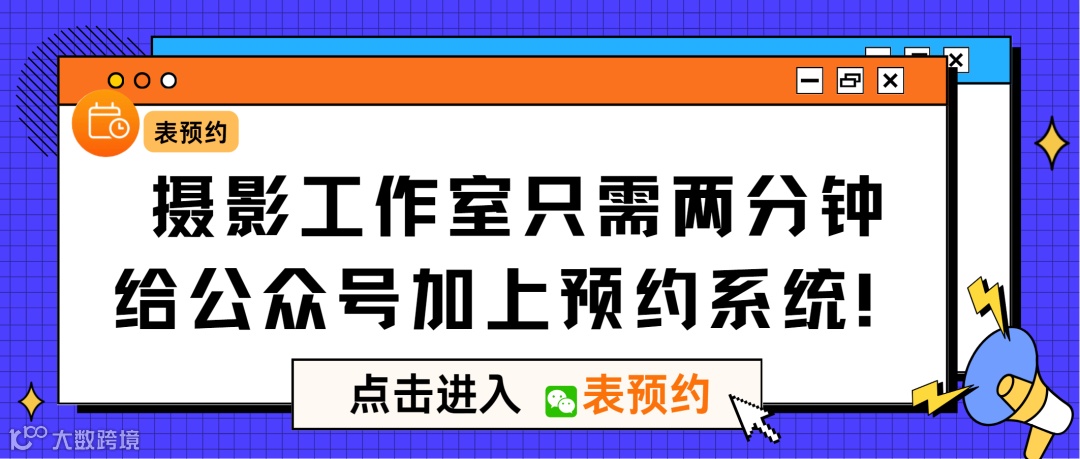 现在有一款微信预约小程序——表预约,可以在摄影公众号主页嵌入预约系统,客户通过微信即可线上预约摄影,选择合适的摄影服务和时间,填写信息后会生成预约二维码,到达工作室后,出示预约码,工作人员可以扫码核销。可随时汇总、统计预约人员信息,收到客户预约成功通知。