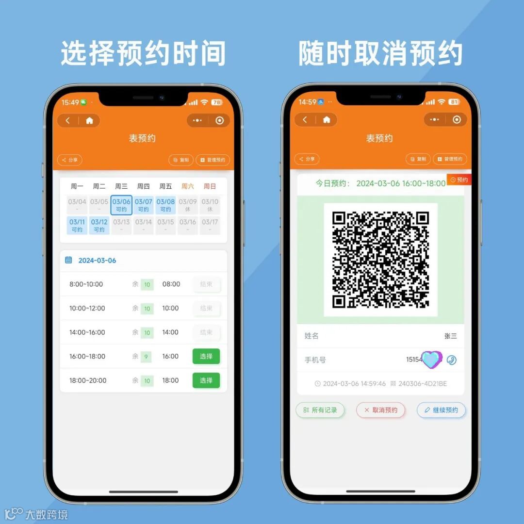 用户在进行预约时,必须回答管理员设定的问题,以确保预约的精准度和针对性。预约成功后,用户会收到二维码。当用户到场时,管理员只需扫码即可完成核销。表预约小程序严格遵循用户隐私保护原则,确保所有预约信息均互不可见。