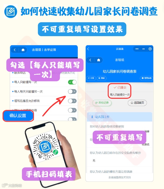 在问卷调查过程中,如果填表人重复提交表单,会给数据管理和带来诸多不便,也会影响统计的准确性。