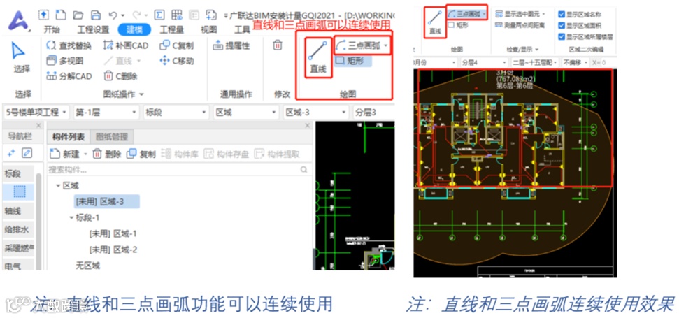 方法二:单击明细量表或此表处于显示状态,单击区域图元(可多选),明细量表显示对应区域工程量;